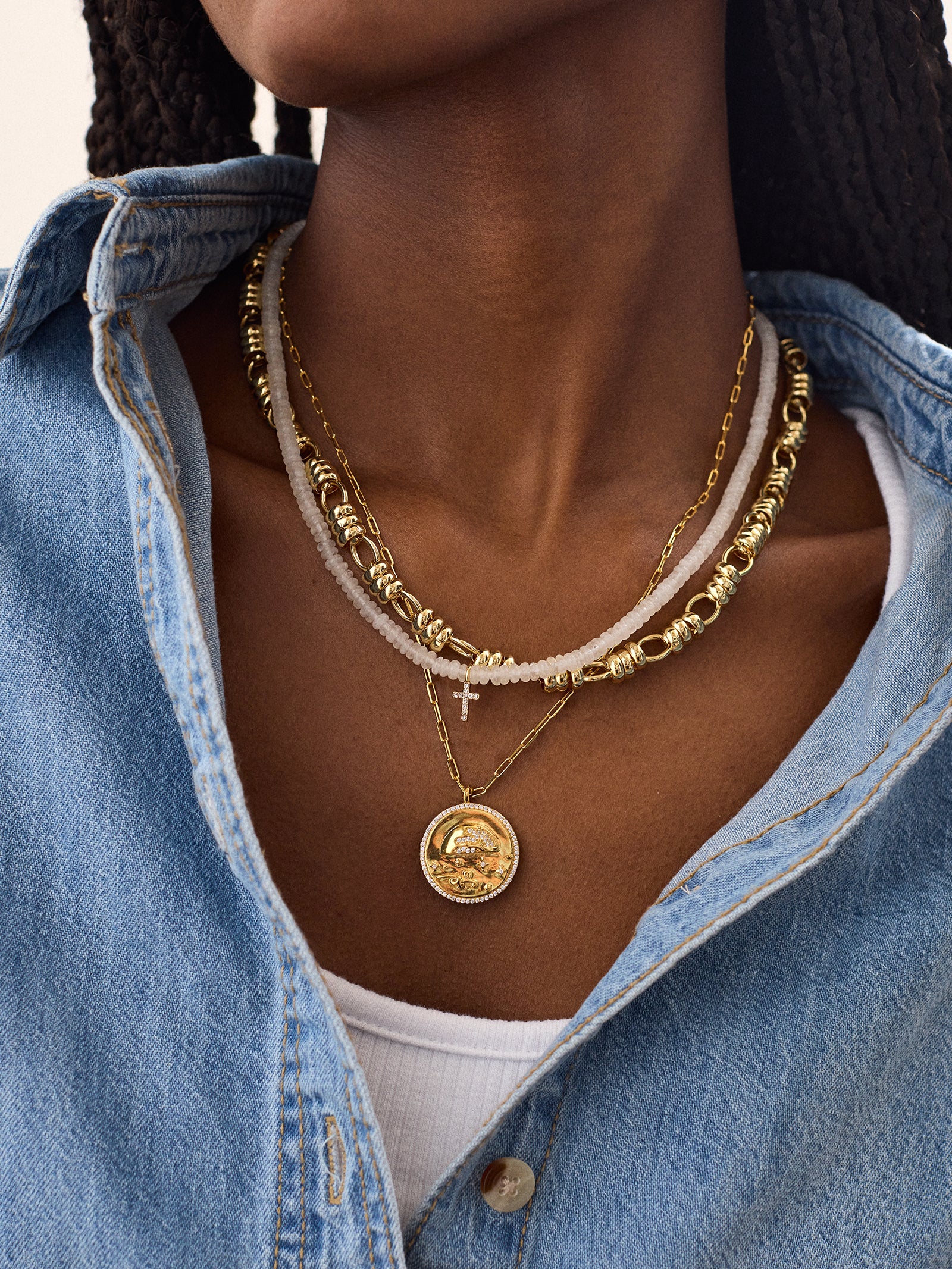 Switch up your necklace in seconds with the 18K Gold Ocean Reversible Pendant Necklace. As multi-dimensional as you. this necklace features a double-sided pendant to complement different days and different outfits. One side features a colorful. oceanic scene. The other features waves in gold and cubic zirconia detailing. Even better? This piece is crafted with 18K Gold. meaning it’ll last you a lifetime.