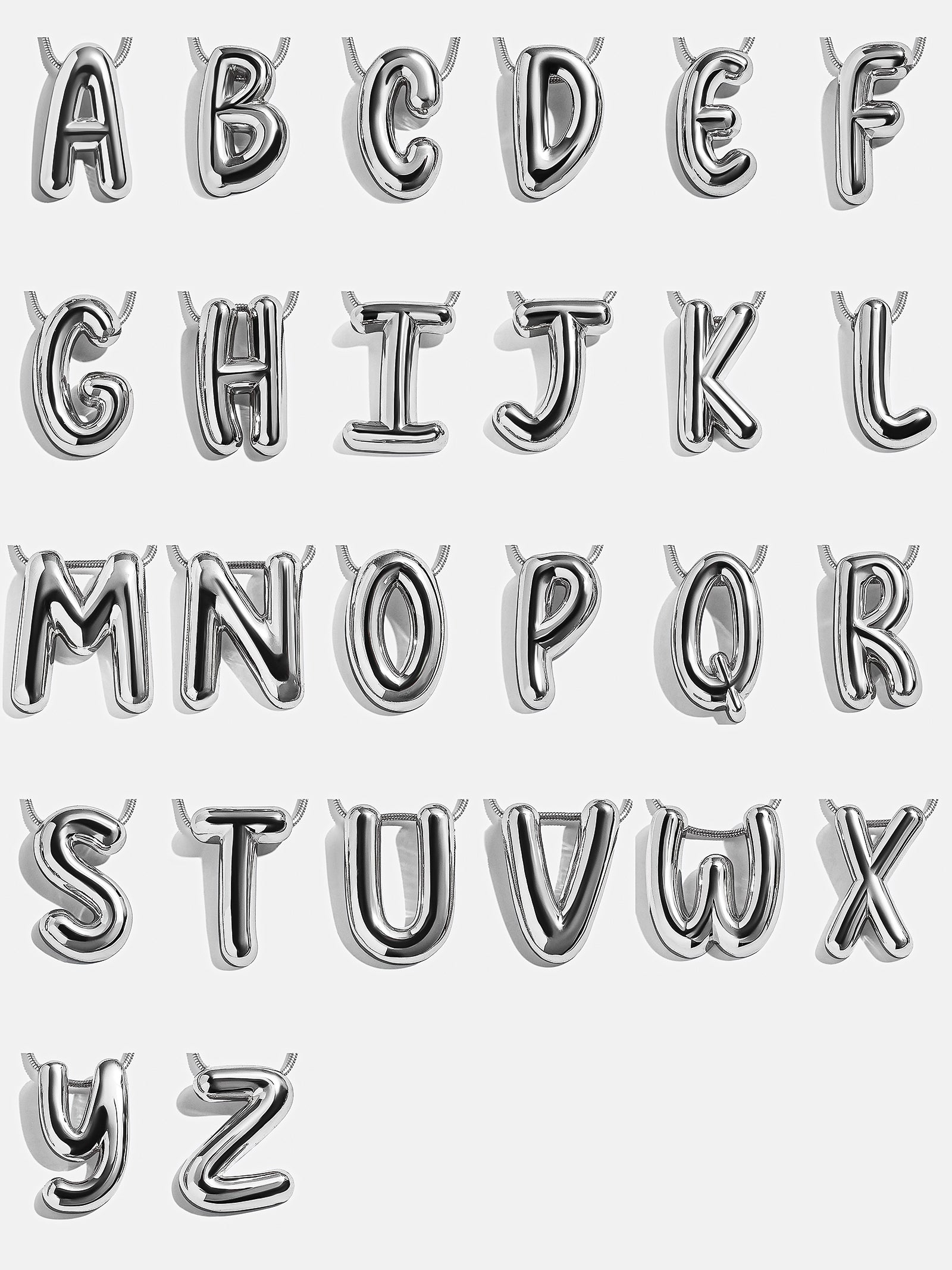 Opt for this classic initial necklace with a modern twist. The Bubble Initial Necklace features a snake chain attached to an initial pendant. Each letter is crafted in a fun. 3D-inspired bubble font. Choose your initial or that of a loved one and stack it every single day.