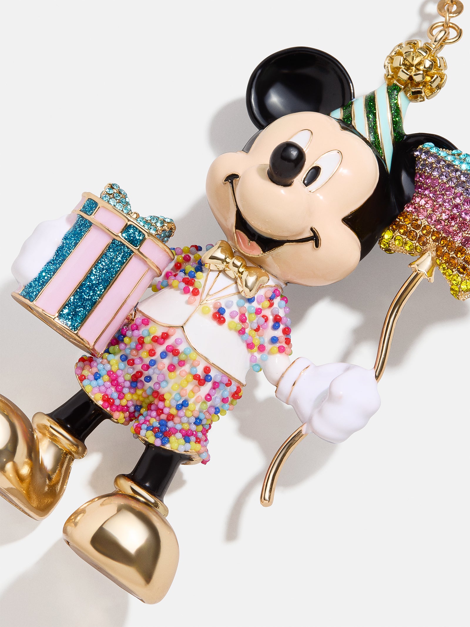 Celebrate Pluto’s 90th anniversary with Mickey and his friends! Made to party. the Disney Mickey Mouse Celebration Bag Charm features the character in a colorful outfit and birthday present in hand. Easily clip this bag charm to add some cute. playful and celebratory personality to any tote. purse. or backpack.