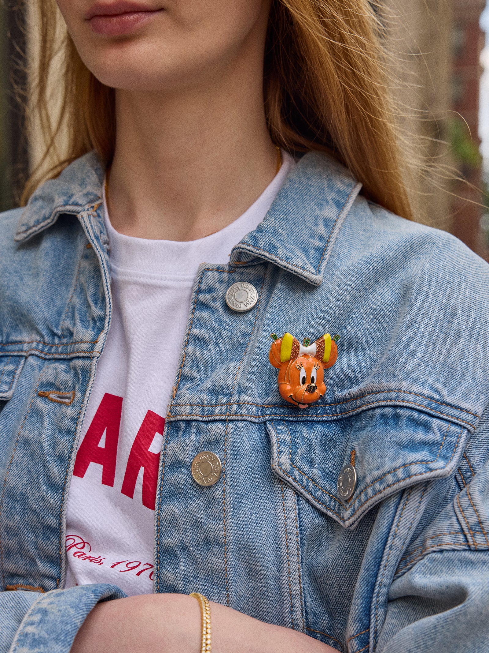 Pin it onto your favorite tote. hat. or straight onto your Halloween costume. This pin is a standout accessory that adds spooky spirit to any outfit. This is an officially licensed Disney product.