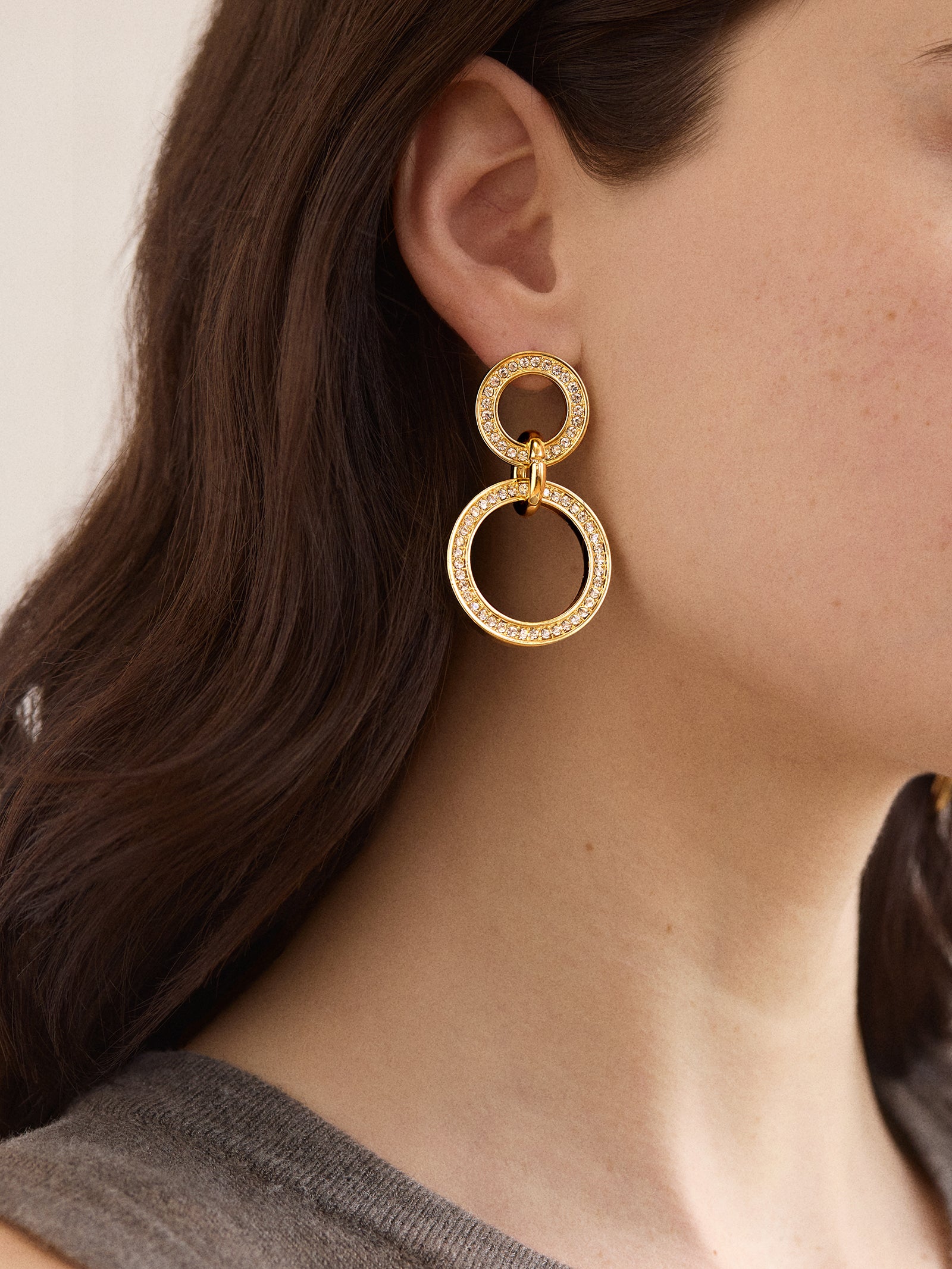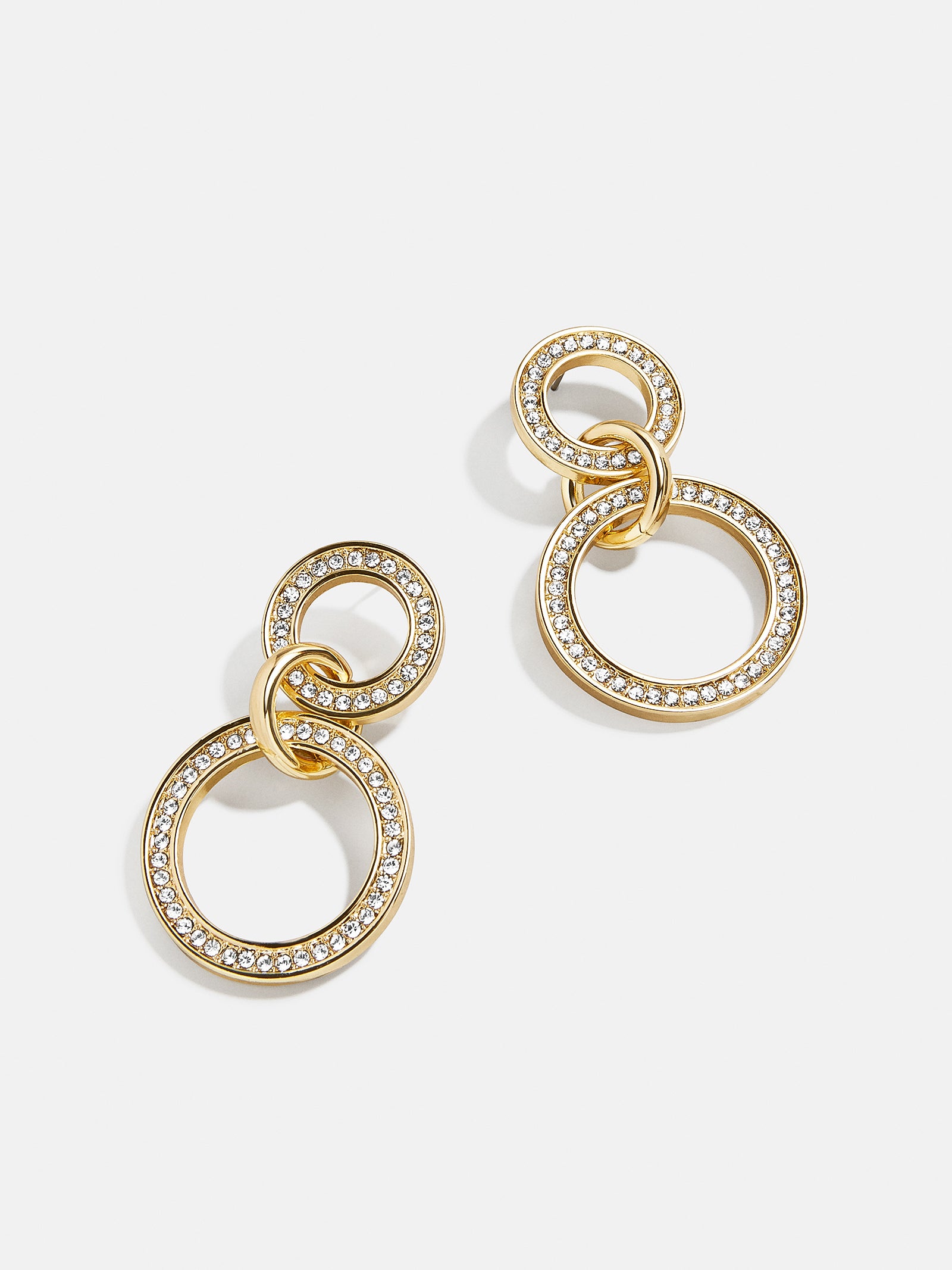 Make an entrance with the Maddie Statement Earrings. A step up from your everyday hoops. these interlinked hoops are sparkling with pav?? details. adding movement and shine to your look. Designed for bold everyday looks or fun nights out. wear with your hair slicked back to really show this accessory off.