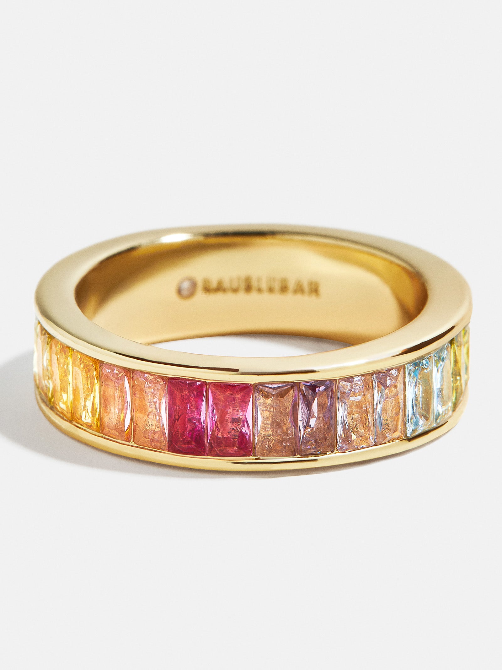 Classically chic. the Maria Ring is a must-have staple for your everyday ring stack. Its baguette crystals are available in either a timelessly clear sheen or a multicolored glow for a fun pop of color.