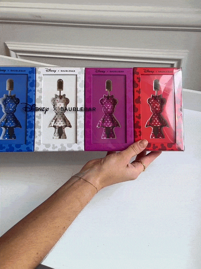 Give Disney fans the best gift ever with the Minnie Mouse Disney Bag Charm Set. This set comes complete with five of our best-selling Minnie Mouse keychains. each in a vibrant polka dot pattern. Choose to give them all to one recipient. or split them apart and give one to each of your friends. Not to mention. each comes in a luxe. matching box. meaning it’s ready-to-gift.