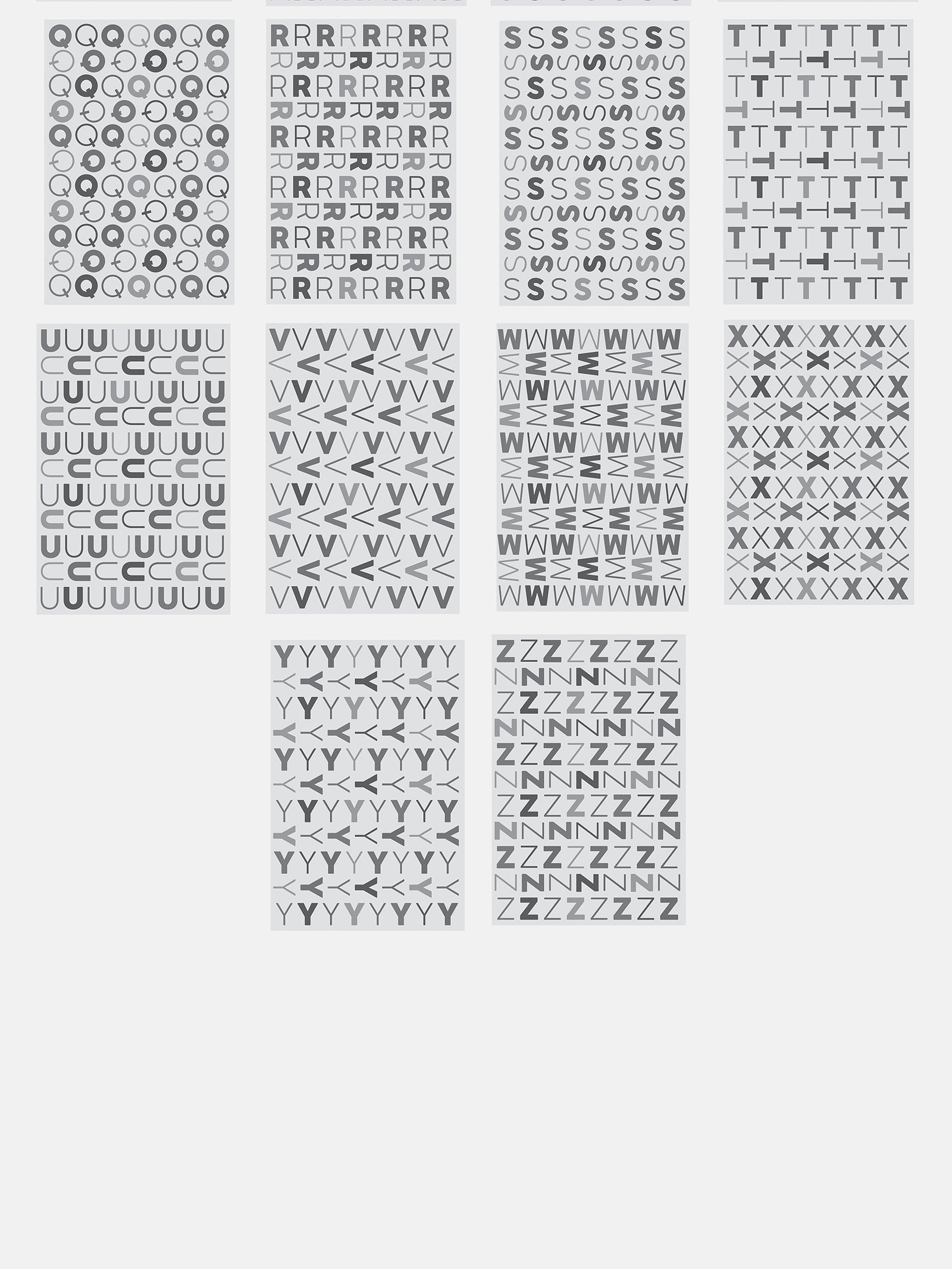 • Playful pattern with bold. thin. upright. and sideways letters